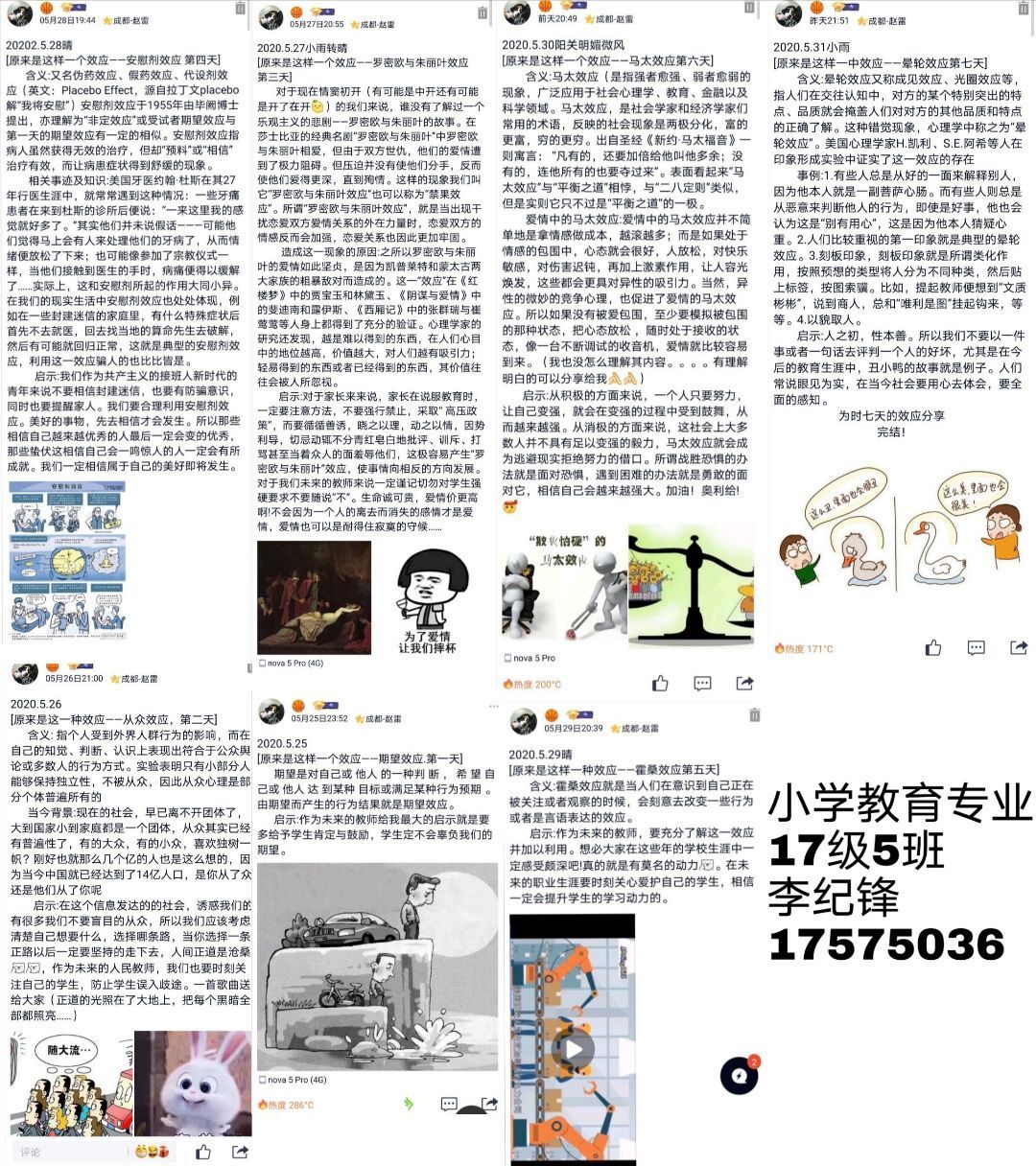 比赛期间,共发布期望效应、从众现象、罗密欧与朱丽叶效应等七个趣味心理现象,涉及自信心确立、聚焦目标、正确认识爱情等主题。活动吸引了近千余名学生浏览参与,170余名参赛学生将自己对当天发布的心理现象的学习心得和生活体验,以“文字+配图”的形式在自己的QQ空间发布分享个人心理体验,评选出一等奖5个,二等奖10个,三等奖15个,大专部英语教育专业19-2班荣获优秀组织奖。