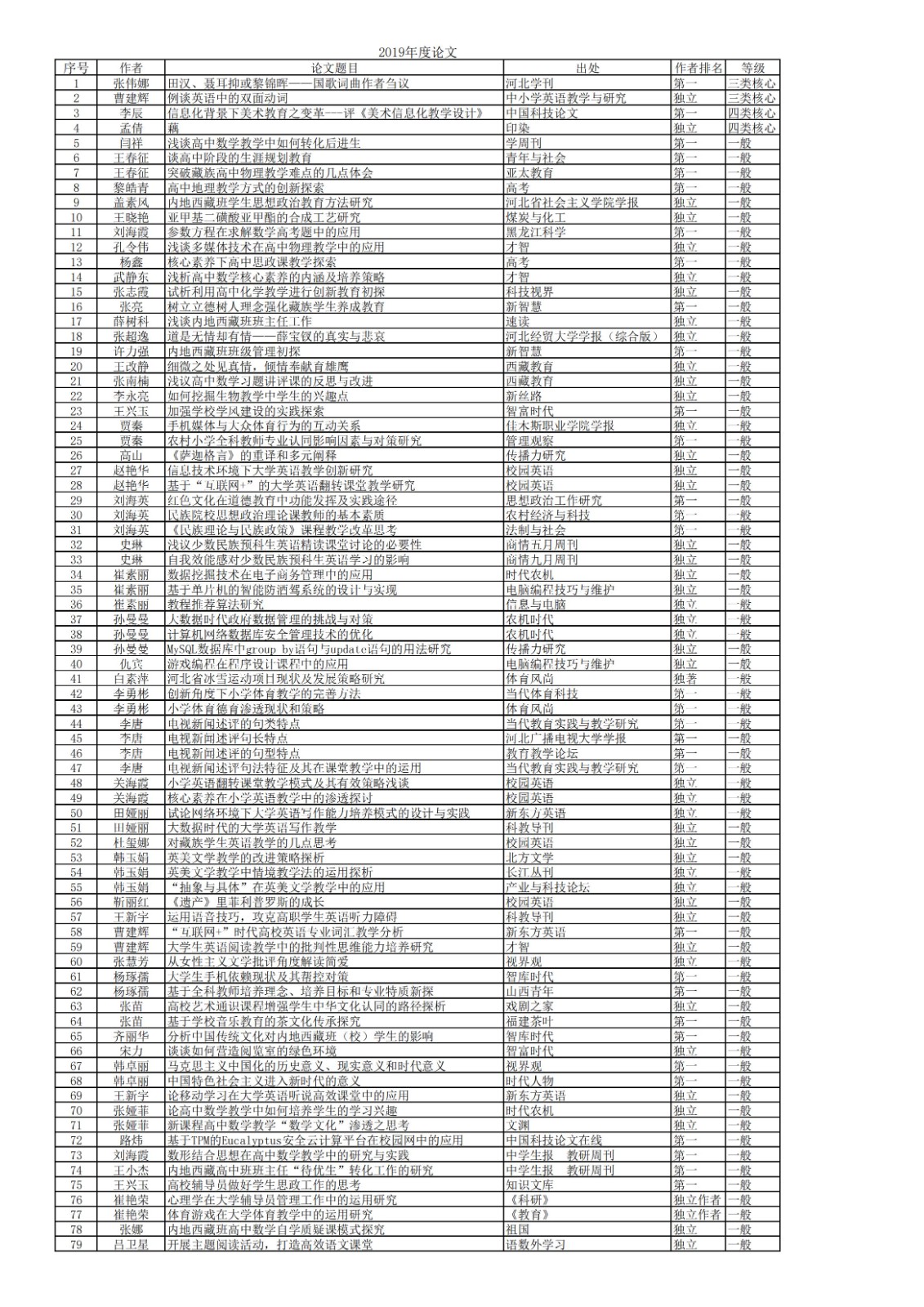 2019年科研成果
